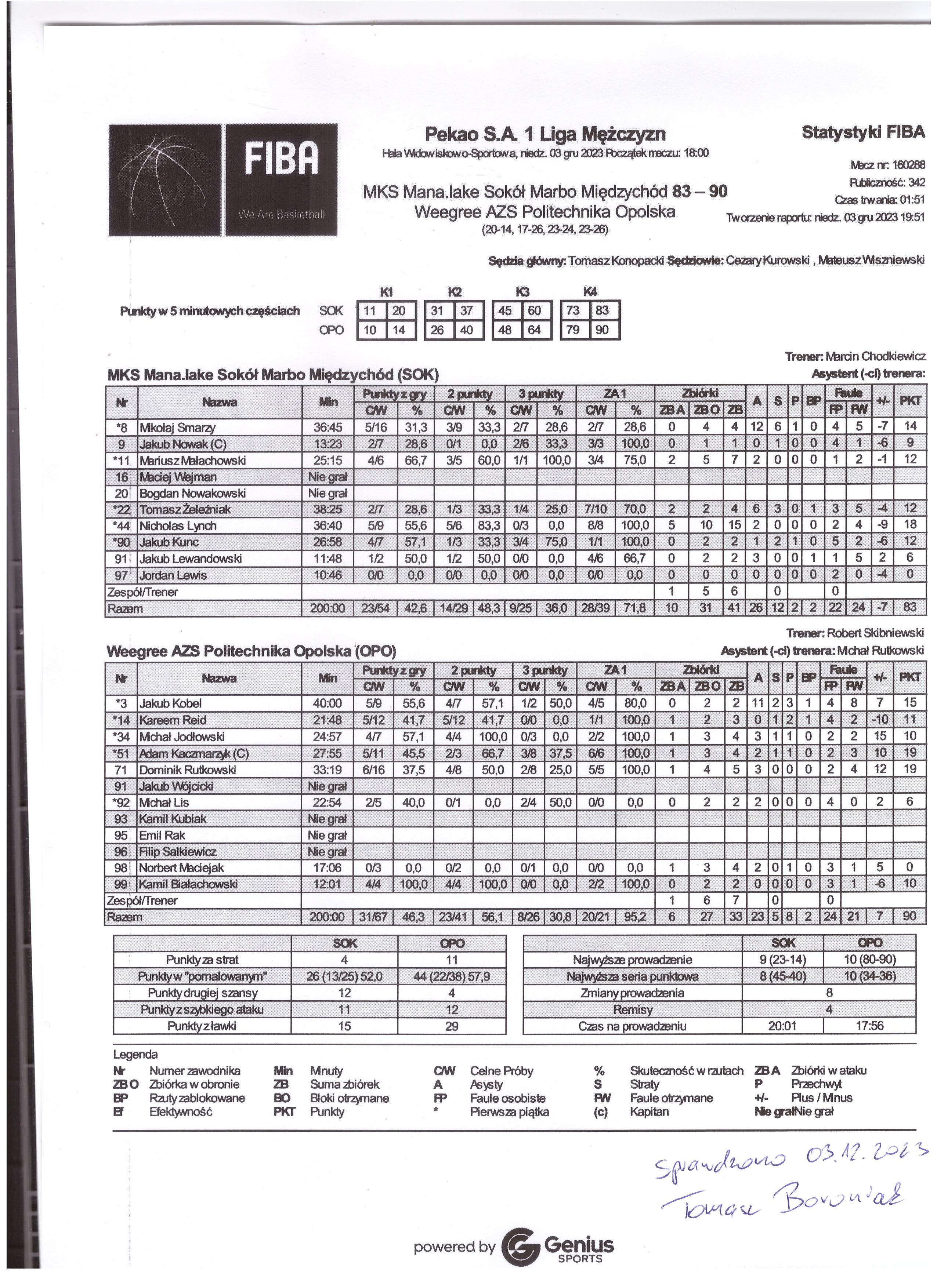 | 98 | Norbert Maciejak | 0 | 17:06 | 0/2 | 0.0 | 0/1 | 0.0 | 0/3 | 0.0 |   |   | 1 | 3 | 4 | 2 | 3 | 1 |   | 1 |   |   | 4 | 5 | |
