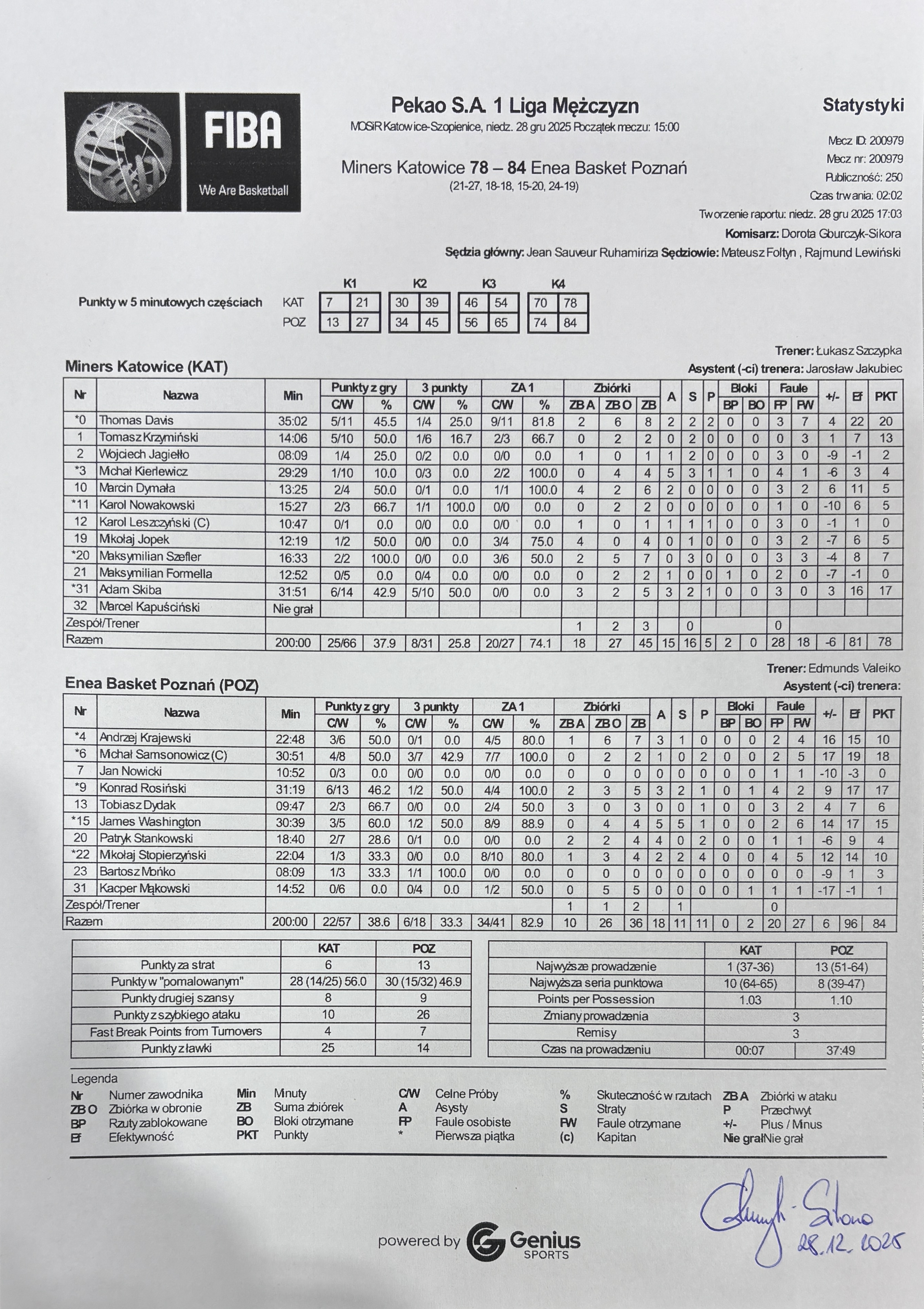 | Miners Katowice | Enea Basket Poznań | |
