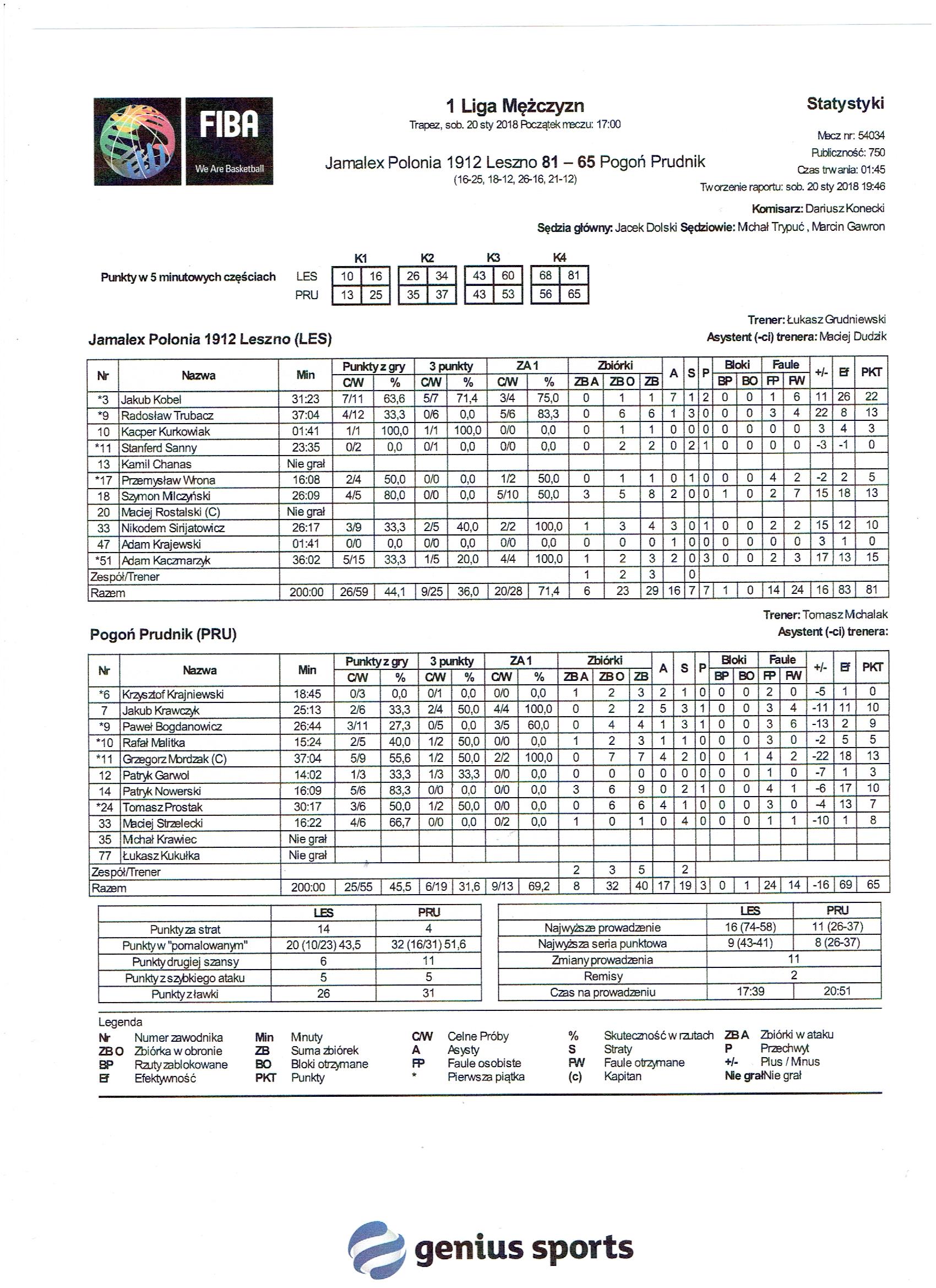 Sędziowie: Jacek Dolski, Michał Trypuć, Marcin Gawron | Komisarz: Dariusz Konecki