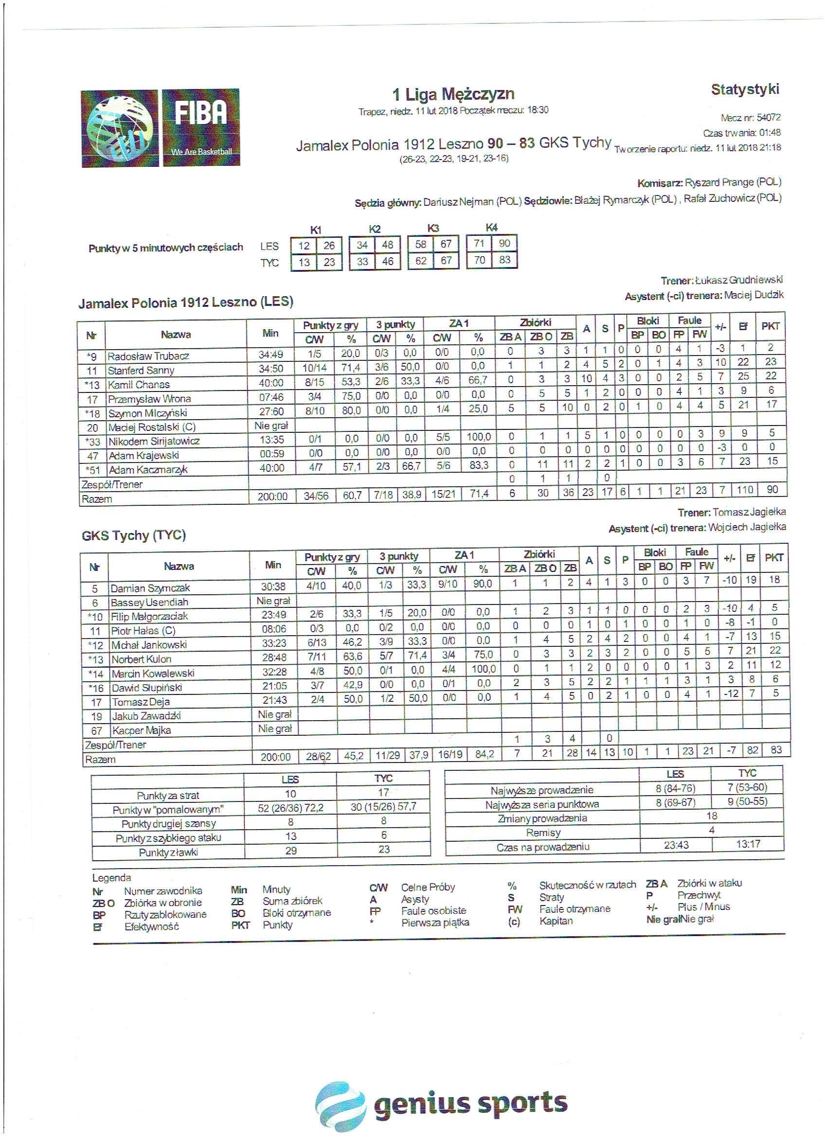 | Jamalex Polonia 1912 Leszno | Kwarta 1 | GKS Tychy | ||