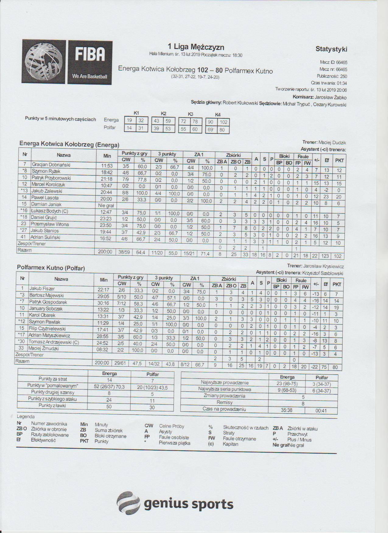 Sędziowie: Robert Klukowski, Michał Trypuć, Cezary Kurowski | Komisarz: Jarosław Żabko