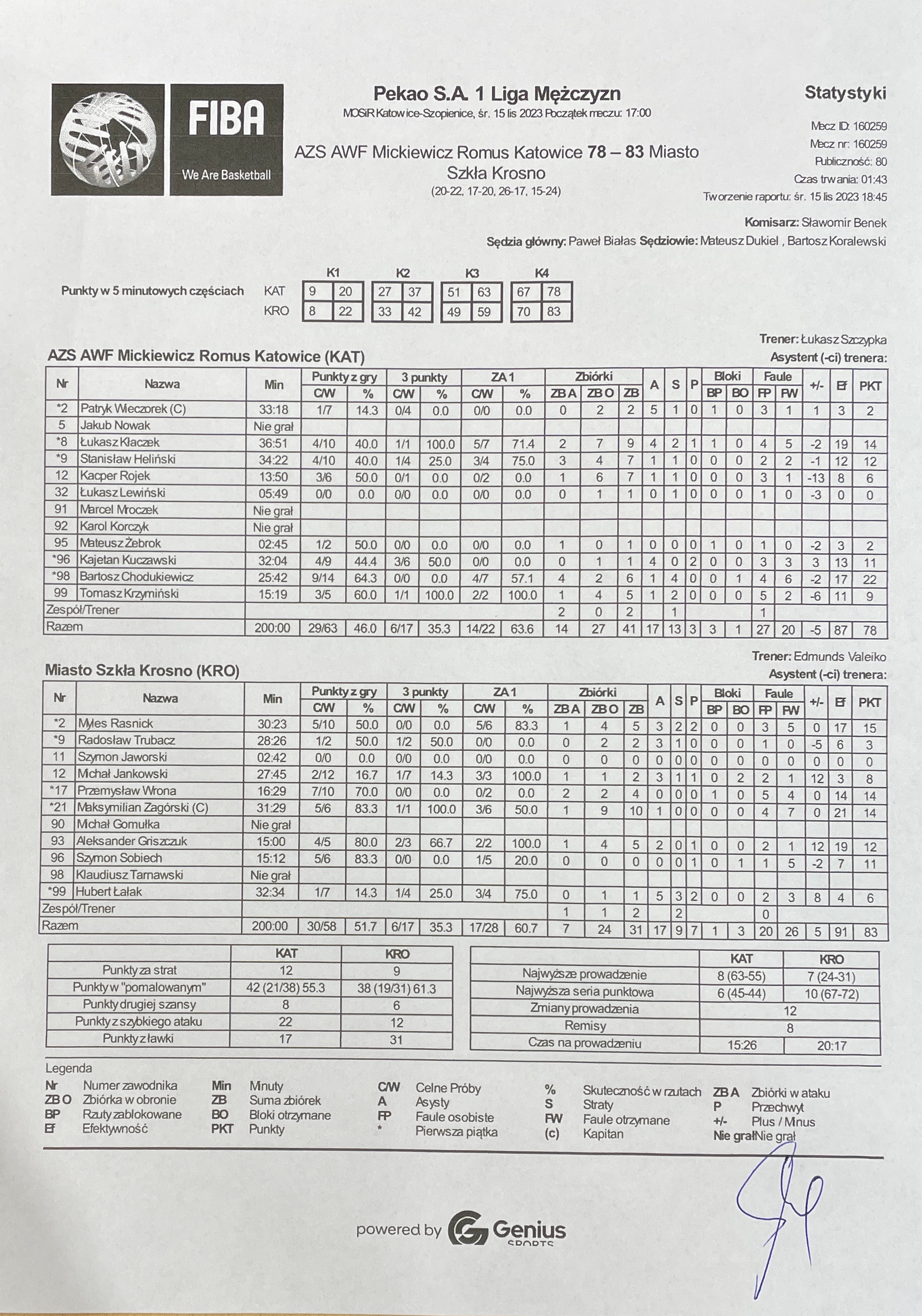| AZS AWF Mickiewicz Romus Katowice | Kwarta 1 | Miasto Szkła Krosno | ||