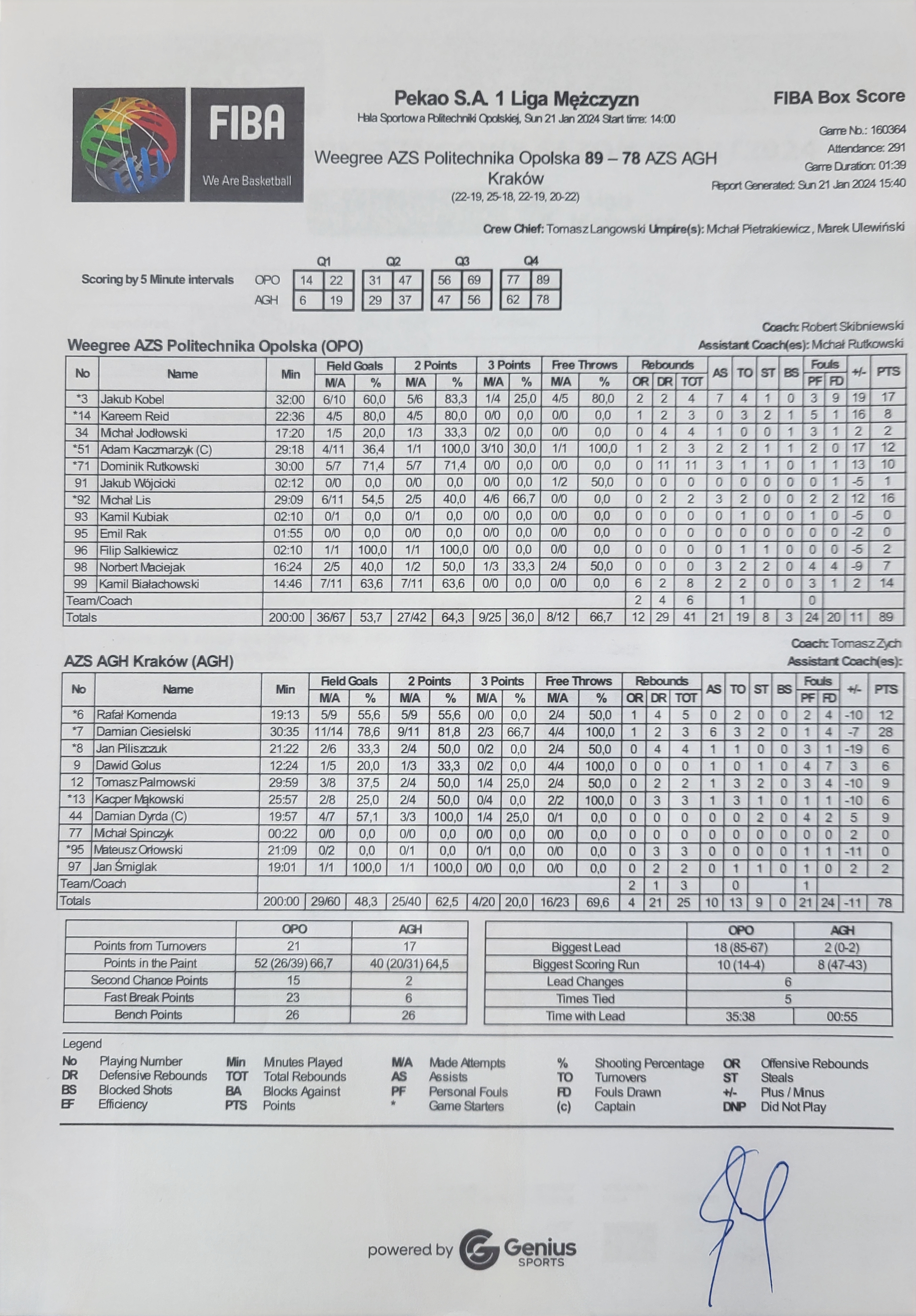 | 71, D. Rutkowski, celny lay-up | 14 | 05:24:00 | 4 | |