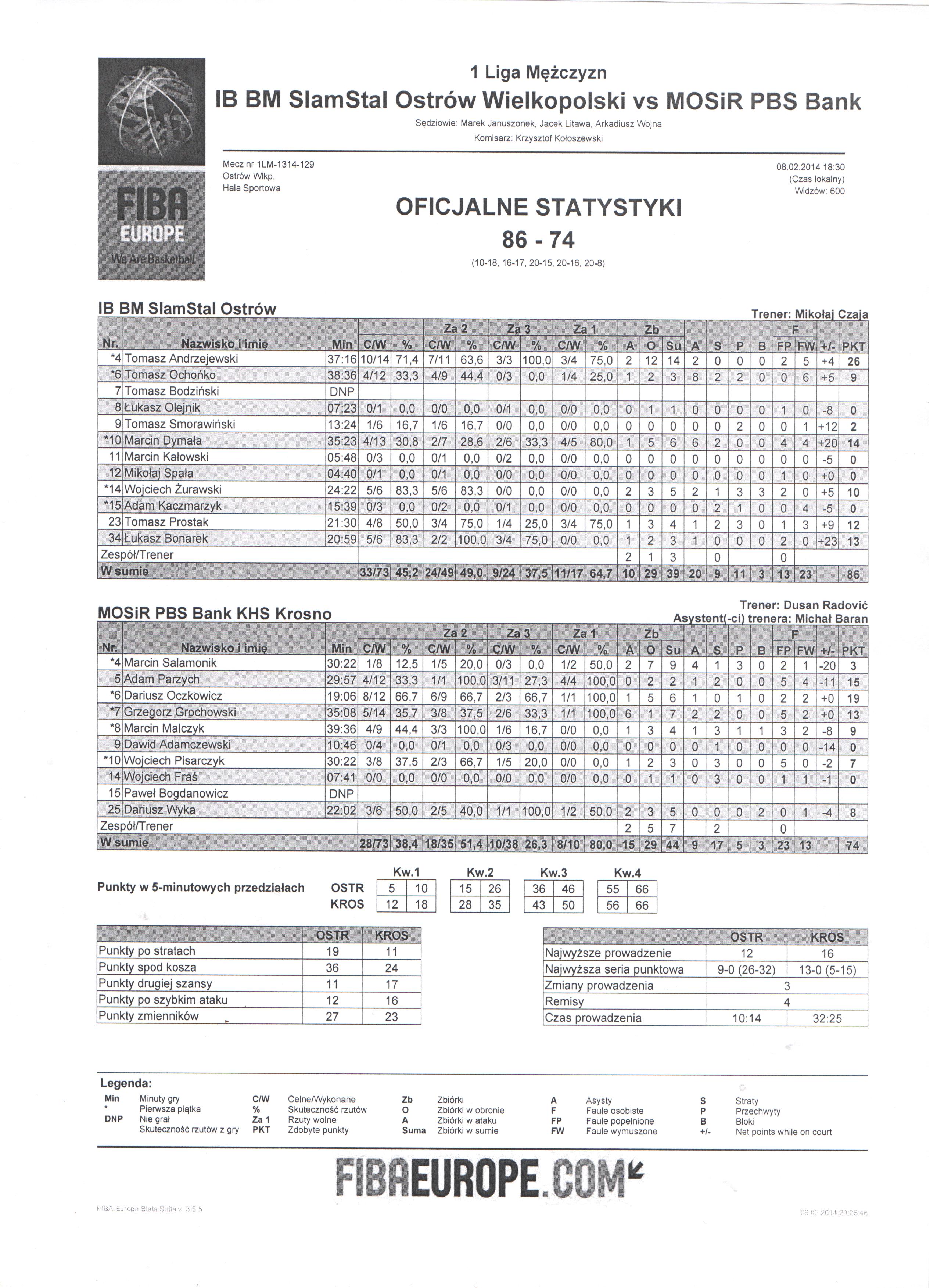 Sędziowie: Marek Januszonek, Jacek Litawa, Arkadiusz Wojna | Komisarz: Krzysztof Kołoszewski