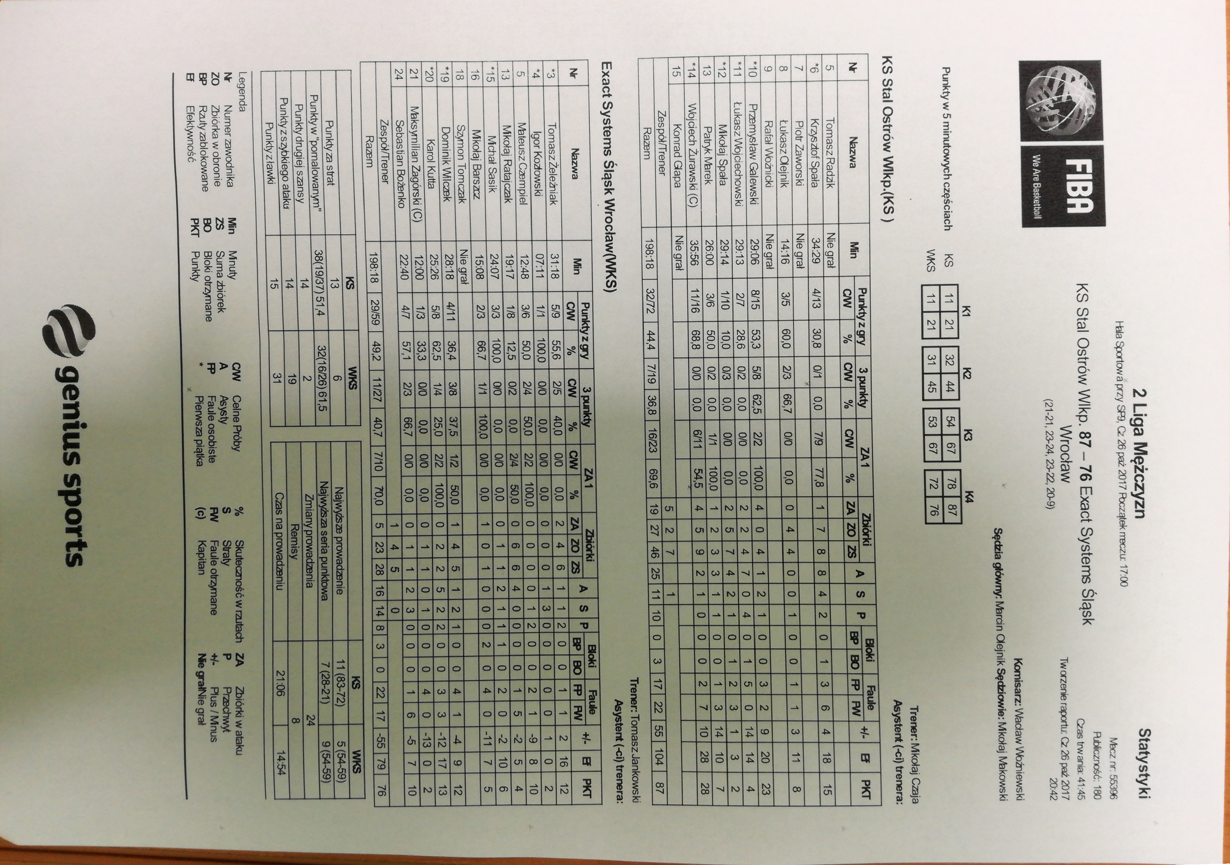 | KS Stal Ostrów Wlkp. | Kwarta 1 | Exact Systems Śląsk II Wrocław | ||