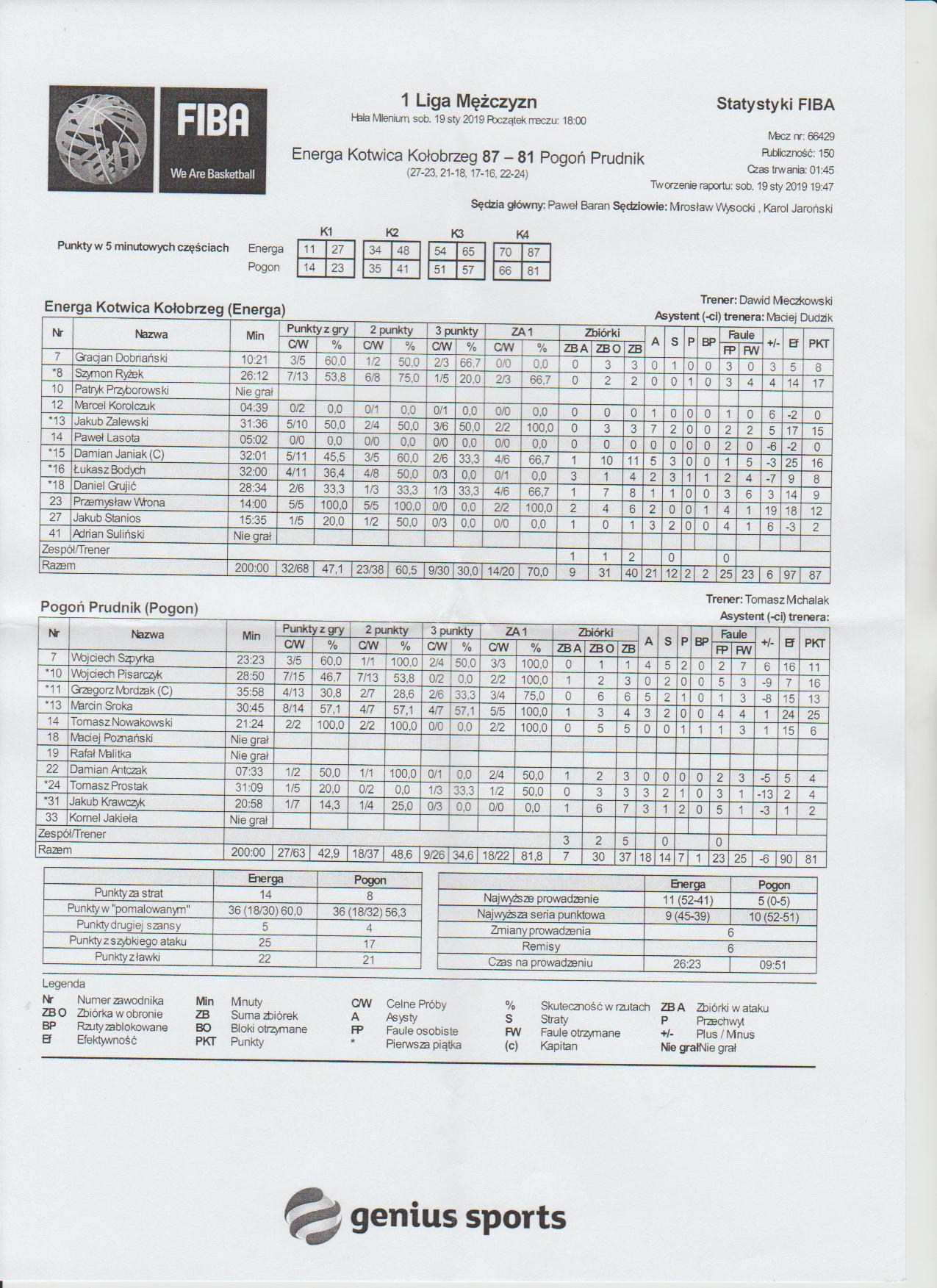 | Damian Janiak (4.2) | celny rzut z gry | Tomasz Prostak (5.8) |